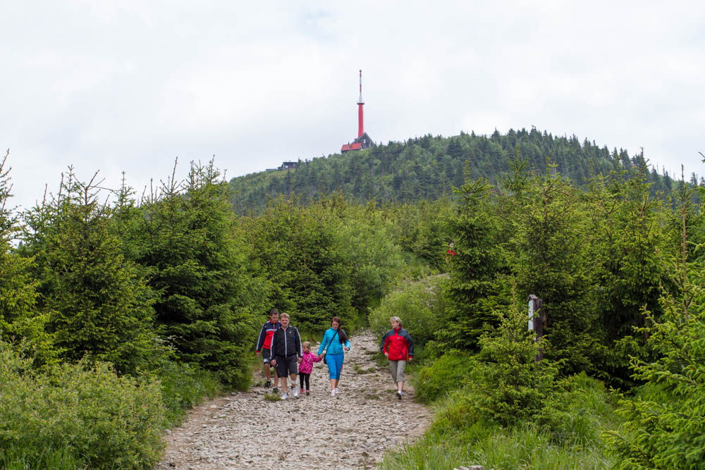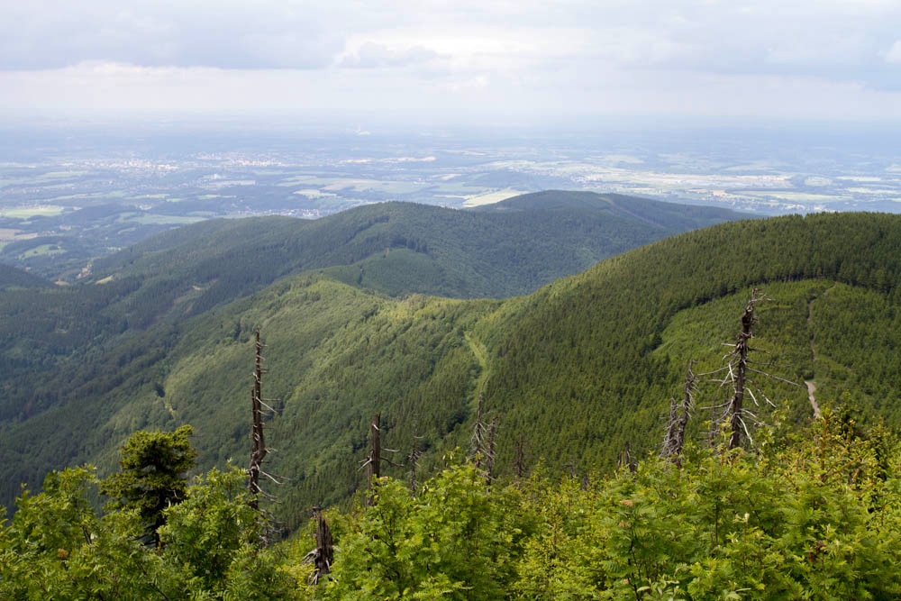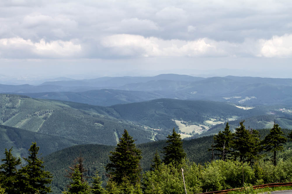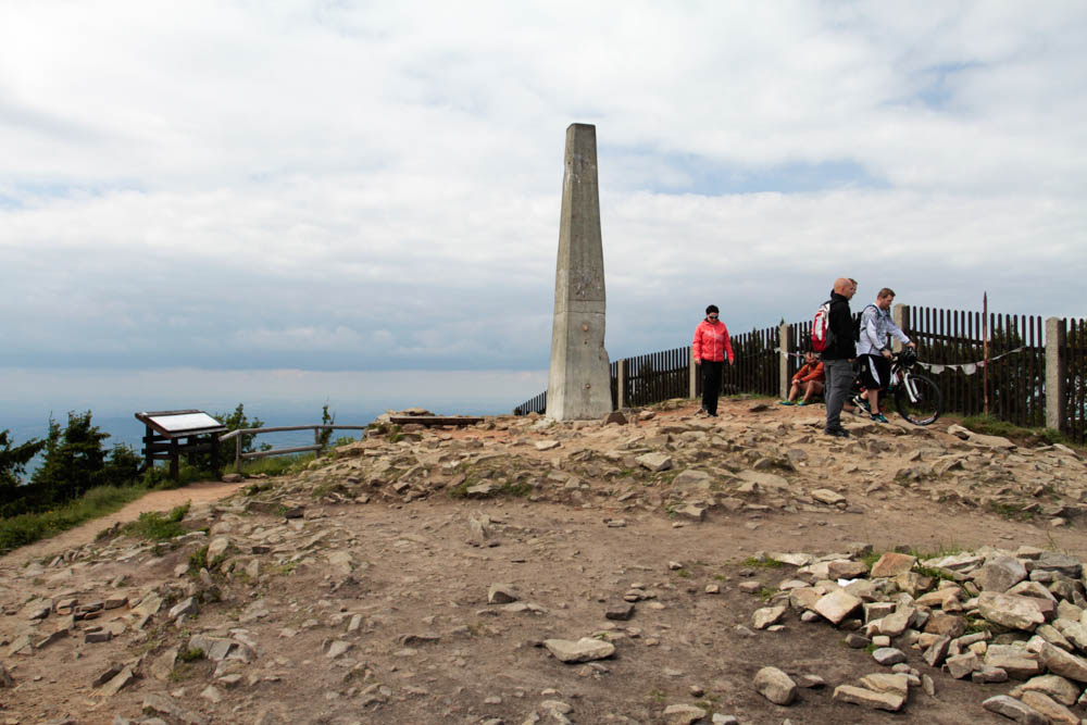 Naše cesta finišuje. Potkáváme velký kříž určený památce obětem hory a při příchodu se zdravíme s Bezručovou chatou. První místo, kam příchozí míří, ale není hospoda, jak by se dalo očekávat, nýbrž nejvyšší bod, u kterého se nadšení pokořitelé fotografují. Výhled z Lysé hory je jedním slovem nepopsatelný. Člověk má dojem, že odsud vidí snad všude a chvílemi se mu zdá, že hlavou zavadí o mraky.